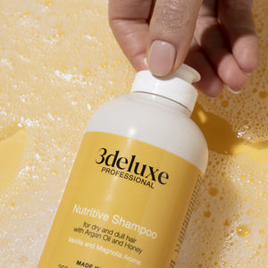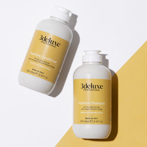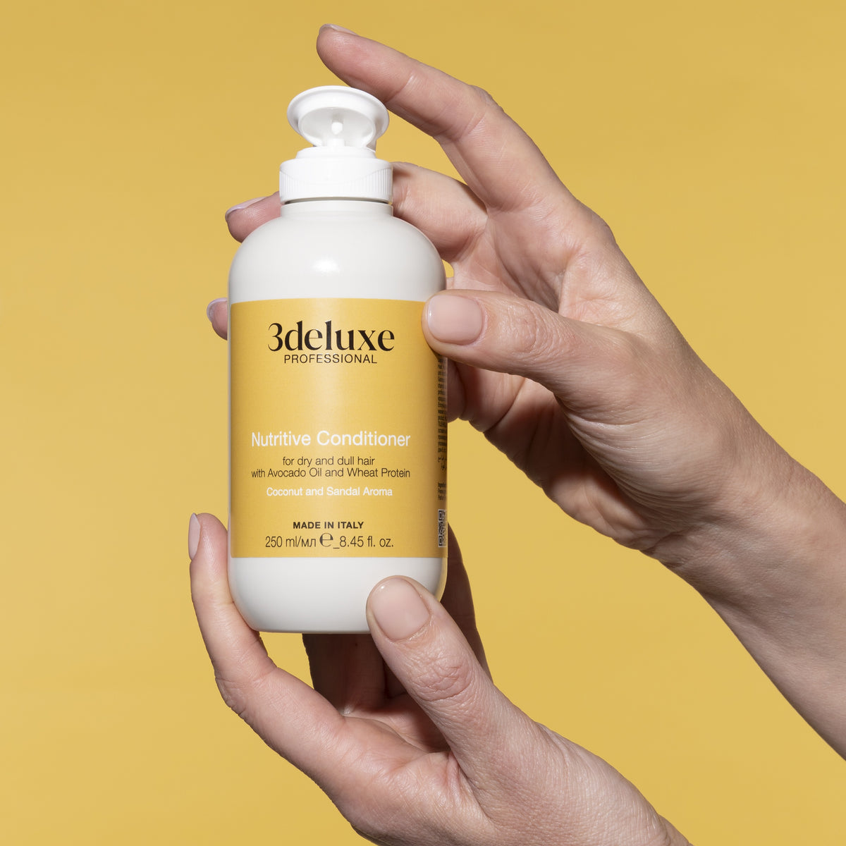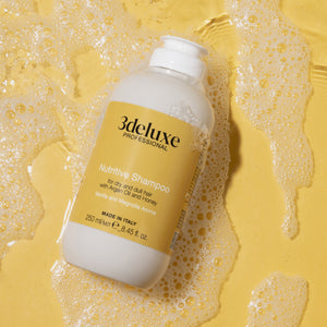 The 3deluxe Nutritive Collection replenishes and revitalises dry, dull, or damaged hair with salon-quality nourishment. Enriched with argan oil, honey, avocado oil, and wheat protein, it restores hydration, strength, and silky softness.