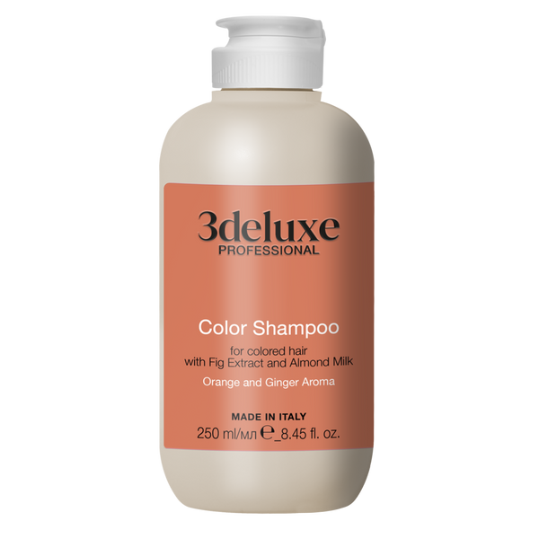 3Deluxe Color Shampoo is a gentle, professional formula designed to protect and extend the vibrancy of coloured hair. With a low-optimized pH, it helps seal the cuticle to lock in pigment, preserve shine, and maintain softness. Enriched with Sweet Almond Milk, Fig Extract, and Sunflower Seed, it nourishes and conditions while leaving hair luminous and silky.
